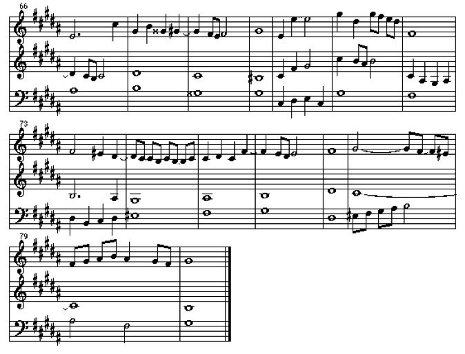Examples of fragments of two voice inventions in a style derived from Bach's, computed by a program by David Cope. The full code in Commun Lisp is published in:
