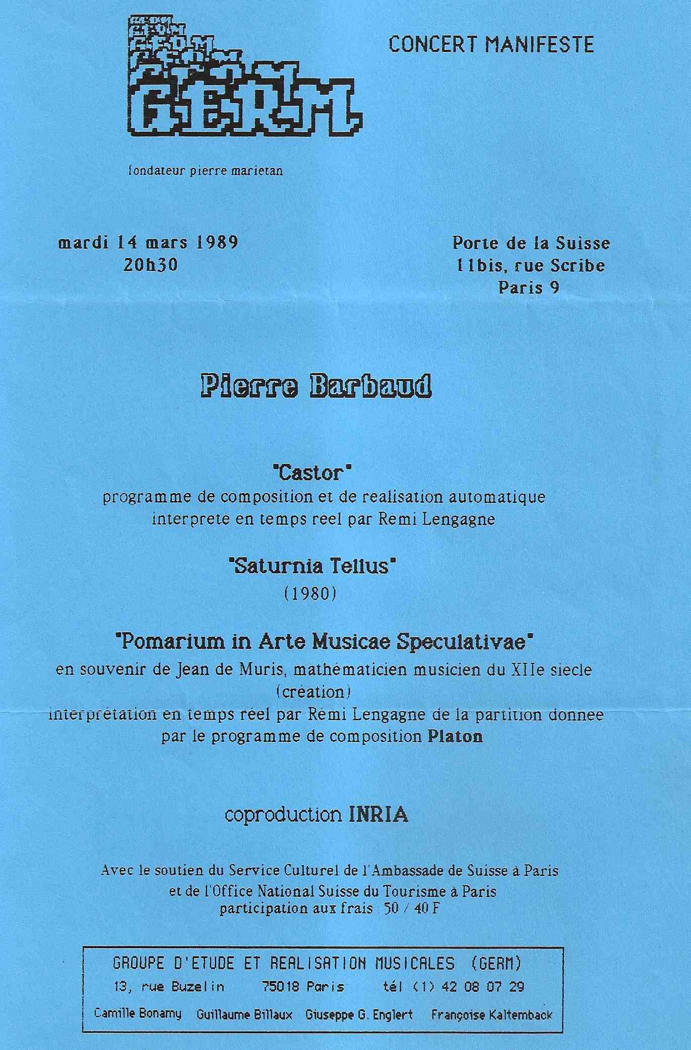 On November 7th, 2011, a meeting was organised by IRCAM and INRIA to celebrate Pierre Barbaud's birthday (October 10th, 1911 - Septembre 10th, 1990) :